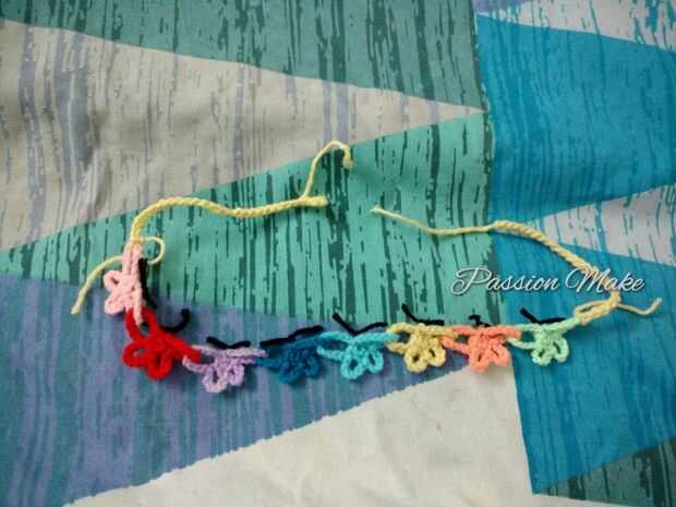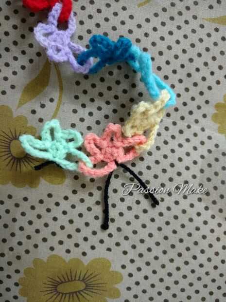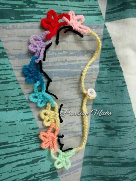 Lo mismo en el otro lado de la mariposa. Después de llegar a la misma longitud, hacer un extra 7 cadenas y Sl St en la cadena de 8. Eso es todo.
