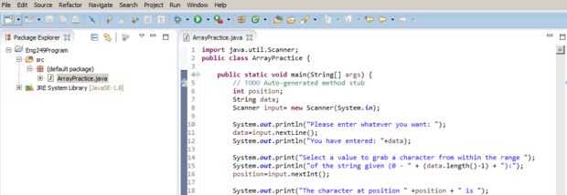 Tipo "System.out.print ("El carácter en la posición"+ posición +"es");" en el espacio de paso 18.