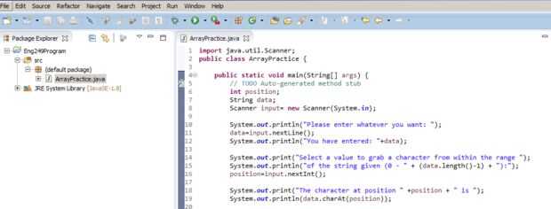 Escriba "System.out.println(data.charAt(position));" en el código del paso 19.