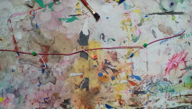 atar las cuerdas poco con granos sobre ellos a gran cadena y poner los granos en el extremo.