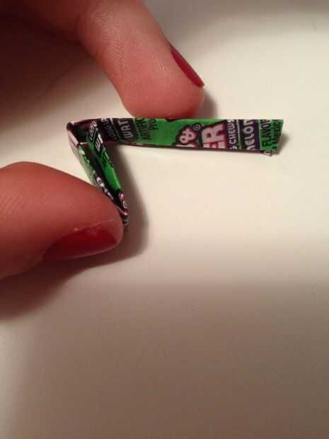usted puede hacer fácilmente una cadena de contenedores starburst o goma de mascar. Estoy usando envolturas starburst desde hoy comí algunos, pero goma envolturas trabajo igual de bien.Acabo de hacer una cadena de un paquete de destellos, pero si tie