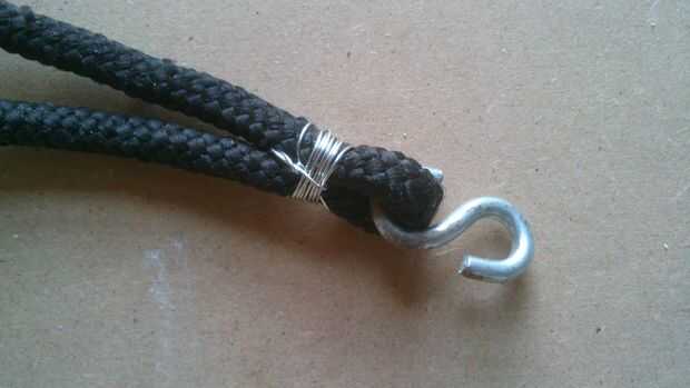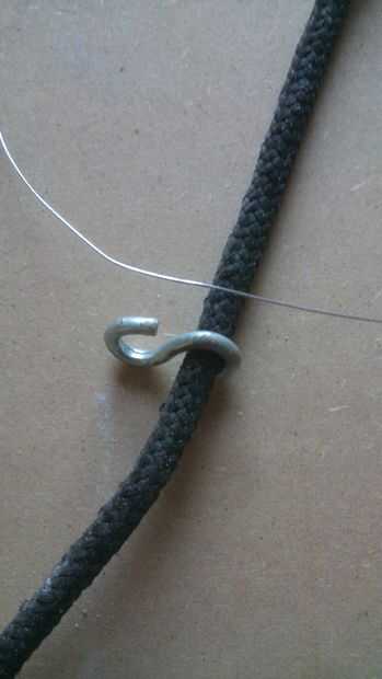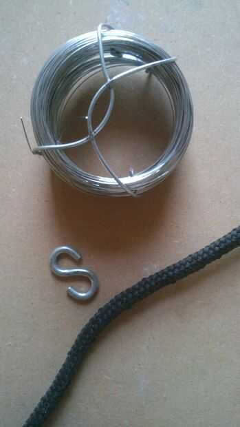 Doblar las piezas doble un gancho Sujete la "S" en el centro. Fije el gancho girando una pieza delgada de alambre alrededor.