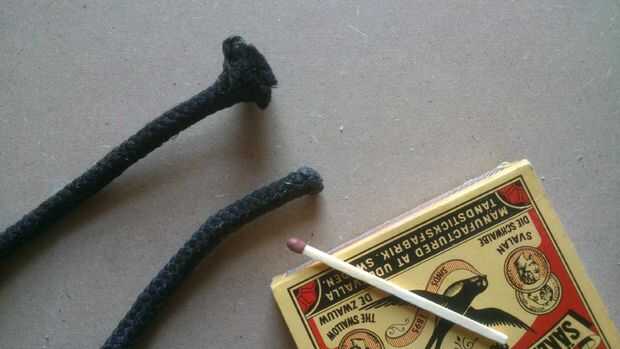Cortar el cordón en dos pedazos, cada 4 metros de largo. Derretir los extremos con un fósforo para evitar la mezcla de colores.