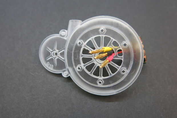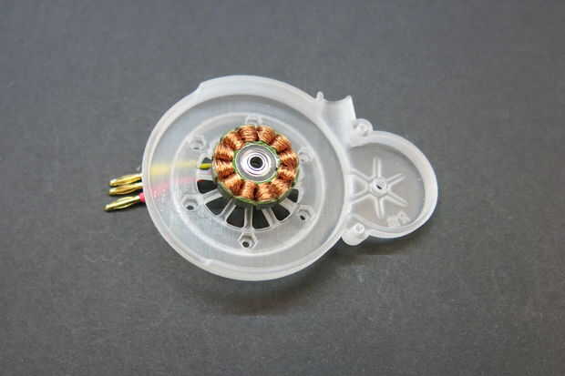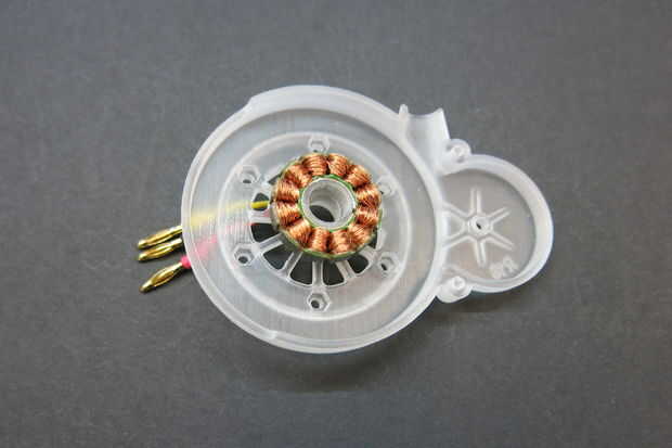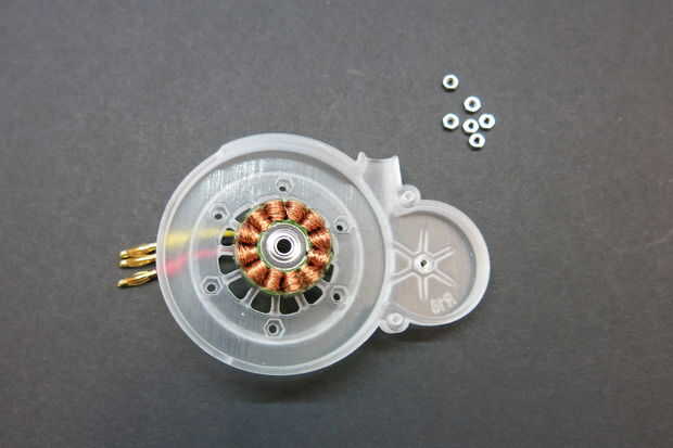 Pase los cables del estator del motor a través de la ranura que se muestra en la segunda imagen.
