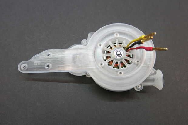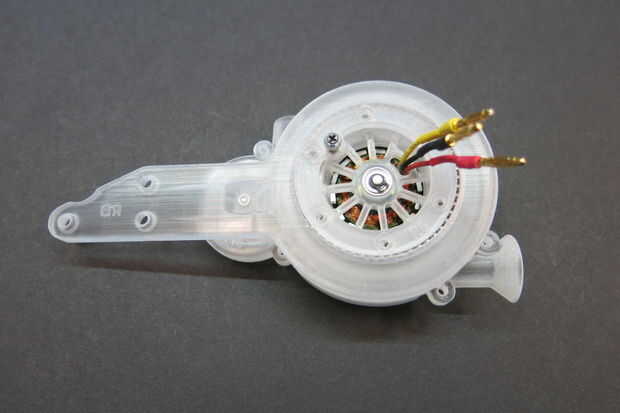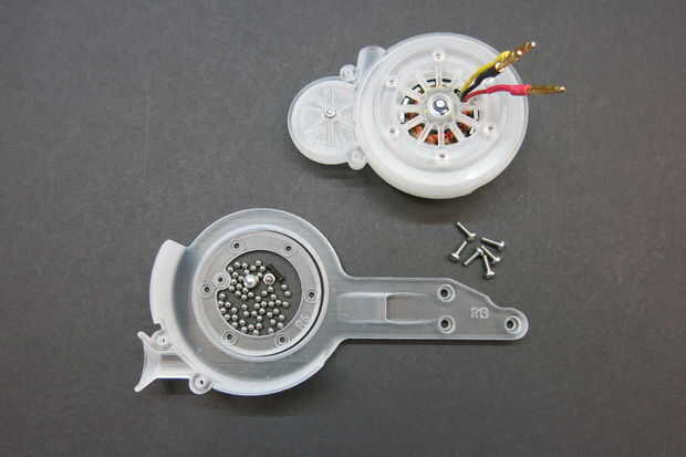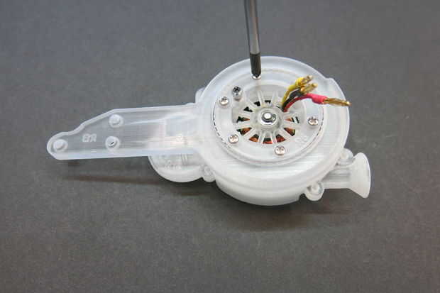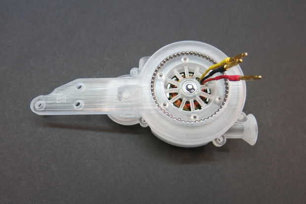Esta parte del diseño demostró para ser el más difícil de diseñar. Quería mantener la sección estrecha. Añadir soporte adicional para el montaje del motor significó que girando a la velocidad del motor y de alimentación en el conjunto de servo. Después de un poco de experimentación que terminé con este diseño para el rodamiento de giro. Aquí está la prueba de concepto, 3d impreso teniendo.