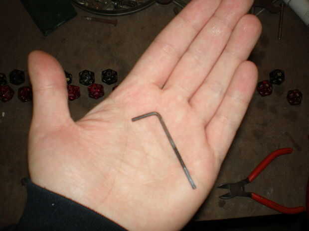 5. / * definiciones de estilos * / tabla. MsoNormalTable {mso-estilo-name: "Tabla Normal"; mso-tstyle-rowband-tamaño: 0; mso-tstyle-colband-tamaño: 0; mso-estilo-noshow:yes; mso-estilo-prioridad: 99; mso-estilo-qformat:yes; mso-estilo-parent: ""; mso-padding-alt: 0 cm 5.4pt 0 cm 5.4pt; mso-para-margen-top: 0 cm; mso-para-margen-derecha: 0 cm; mso-para-margen-abajo: 10.0pt; mso-para-margen-izquierdo: 0 cm; línea-altura: 115%; mso-paginación: viuda-huérfano; fuente-tamaño: 11.0pt; font-family: "Calibri", "sans-serif"; mso-ascii-font-familia: Calibri; mso-ascii-theme-font: minor-latin; mso-fareast-font-family: "Times New Roman"; mso-fareast-theme-font: minor-lejano Oriente; mso-hansi-fuente-familia: Calibri; mso-hansi-theme-font: minor-latin;} Lo que usted usará para perforar a través de los dados. Tiene que ser metal para calentar bien y tiene que ser al menos el mismo diámetro que la cuerda que está utilizando. Puede ser cualquier cosa: taladro, clavo (preferiblemente quirúrgico), aguja gruesa etc.. He elegido una llave hexagonal (llave Allen), 2mm de diámetro.