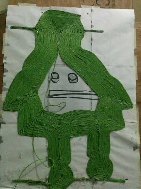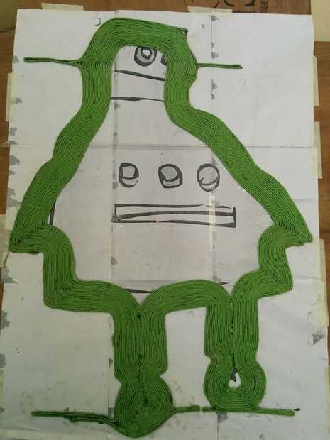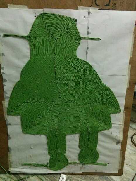 Siga cuidadosamente las líneas de la stencile Inicio pegado que su cadena con la ayuda de la pistola de pegamento en la logo.you puede seguir cualquier método ya sea a partir de interior y terminó en el exterior o viceversa. Pero aquí he utilizado el segundo método. Después de terminado su pegado trabajo utilice el soplador para derretir exceso de pegamento que squeze hacia fuera después de pulsar la cuerda en el glue.painting