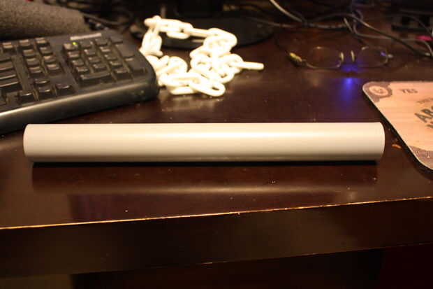 1. Corte una longitud de tubería de 1"/ 25mm PVC para que coincida con la longitud de la dirección que desea. Si desea poner una punta de empuje en el extremo de su bastón, asegúrese de restar 10cm/4 en la longitud de la batuta para tener en cuenta para él.