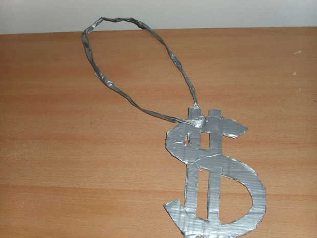 Cadena del resbalón a través del orificio en el signo de dólar. Únalos con cinta adhesiva los extremos de la cadena. ¡ Listo! Ir a mostrar tu bling a tus amigos.