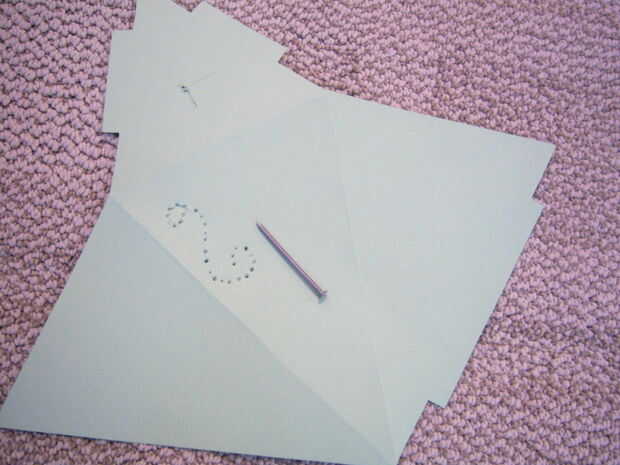Usando el clavo, empujar los agujeros en los lados de la linterna. Asomó sólo diseños en un lado de cada linterna, pero puede hacer dos o los tres lados. Me pareció útil para poner la linterna en el suelo alfombrado mientras penetra los agujeros para evitar cualquier daño a una mesa o escritorio. Ser creativo aquí; Usted puede utilizar espirales, iniciales, flores, aves - lo que adapta a tu tema. Puede ser útil para dibujar el diseño sobre el papel antes de empujando hacia fuera. Tenga cuidado de no empujar los agujeros muy cerca uno del otro o el papel se romperá totalmente.