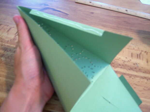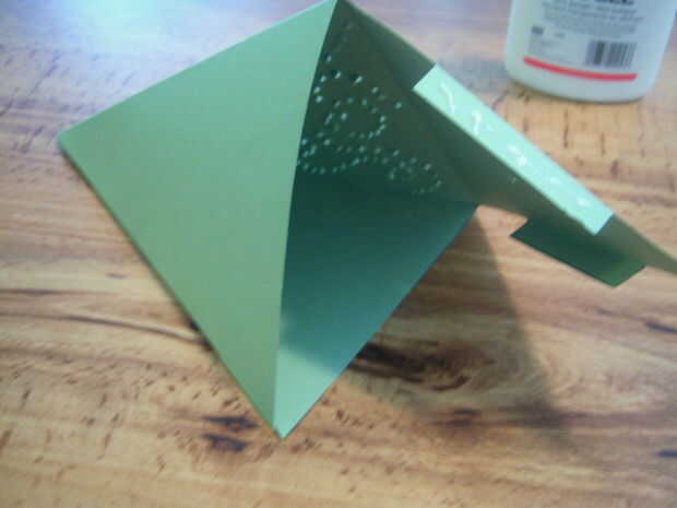 Doblar la linterna a lo largo de cada una de las líneas punteadas. Sostiene una regla a lo largo de la línea de puntos puede ayudar a crear un pliegue limpio. Aplique una pequeña cantidad de pegamento a la ficha de lado Pulse el lado opuesto de la linterna contra él y mantenga presionado hasta que fije de manera segura. Lo mismo para las dos pestañas superiores.