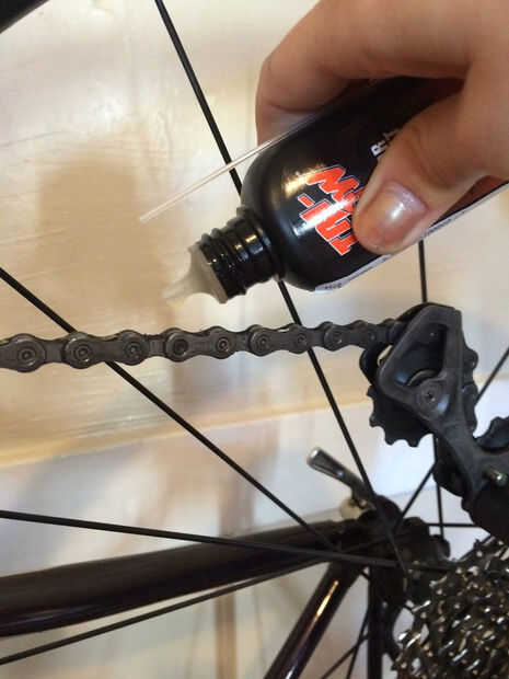 -lubricante para la cadena - usar Tri Flow formulado con P.T.E.E. corre alrededor de $4 por 2 onzas cual es suficiente para un año!