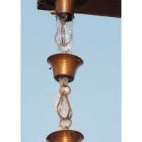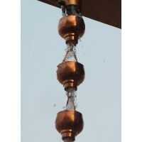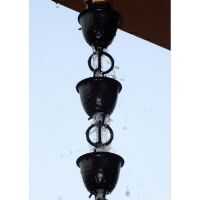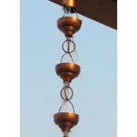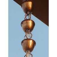 Clásico y elegante en forma y estilo de la cadena de lluvia Mizoko de cobre puro es una cadena de lluvia excepcional de 10 tazas, 10 enlaces de lágrima y 20 enlaces ronda. La lluvia de la Copa de Mizoko es 8,5 pies de largo incluyendo la pieza de instalación canal triangular. Cada taza es individualmente grabada a mano y la cadena de lluvia crea una visión de la cascada durante la caída de lluvia. Con el tiempo la cadena de lluvia Mizoko desarrolla una hermosa pátina marrón en la superficie de lo que es aún más hermoso.