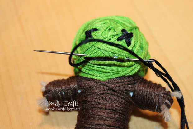 Usé más hilo y una aguja de coser poco X ojos y una boca recta...