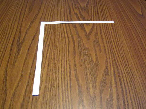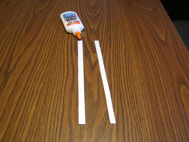 Dos franjas de papel y añadir un punto de pegamento para una tira en la parte superior. Coloque la otra tira en la parte superior para hacer un ángulo recto como la segunda foto.