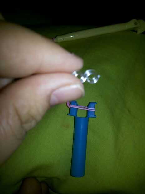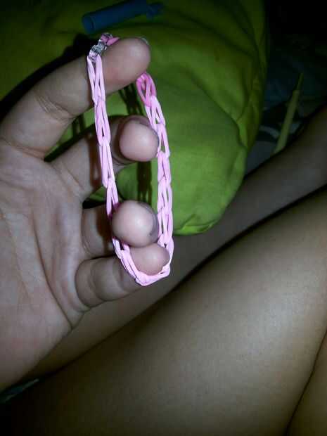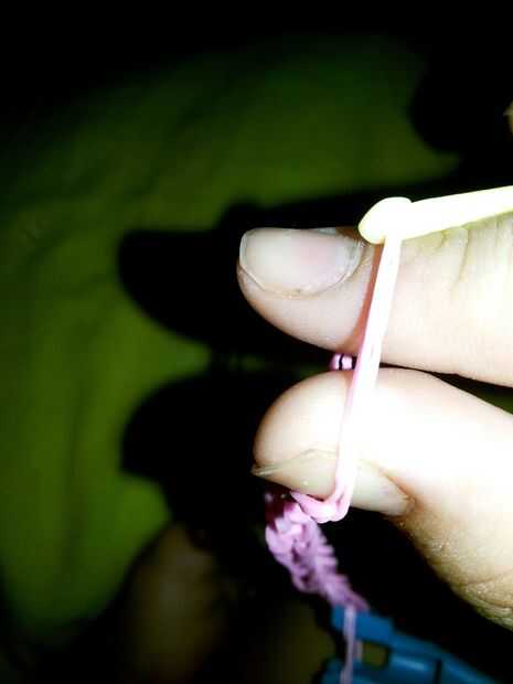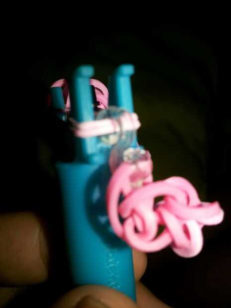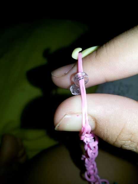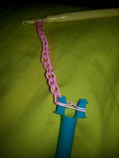 cosas que usted necesita:s-clipganchotelarbandas de gomaPaso 1: a partir Puso sus bandas en una posición de zig zag como en el cuadro hasta llegar al final. Utilicé color de rosa ya que tengo muchos.Paso 2: engancha El telar alrededor del tirón por l