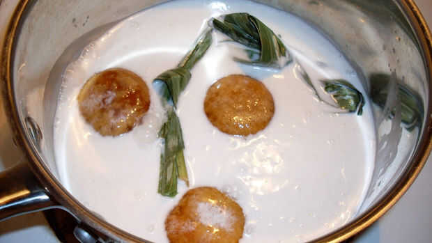 2 hojas de pandan (pino del tornillo, disponible en las tiendas asiáticas, congeladas o fresco)