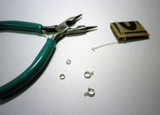 Necesita una pinza para el ojete, una cadena de wichyou puede comprar a su proveedor de arte, 2 aros y anillo de resorte 2 broches (también puede usar estilo garra de langosta si prefiere este look)