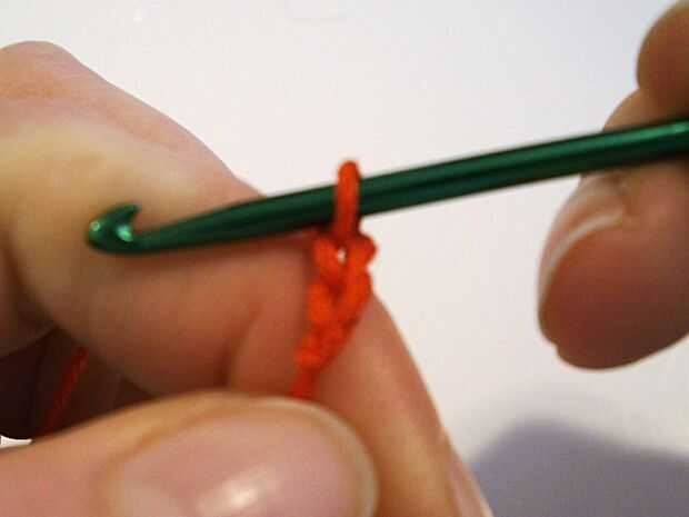 Crochet 2 cadenas, inserte el gancho sólo en el bucle de atrás de la primera cadena, hilo sobre, tire un lazo, hilo sobre y tire a través de los dos lazos. Nos hemos hecho a ganchillo a punto bajo :)