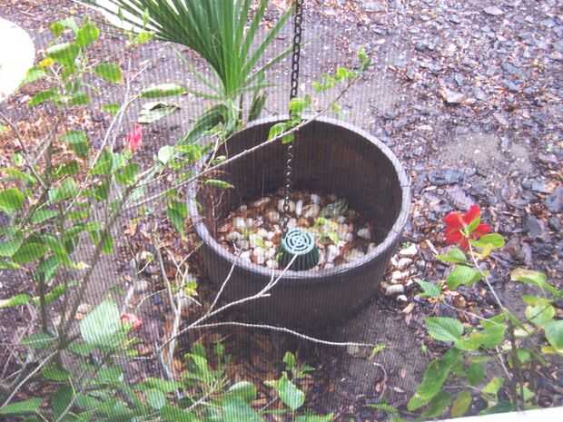 Planta cubo tiene filtro y drenes a bajo tubería de césped.