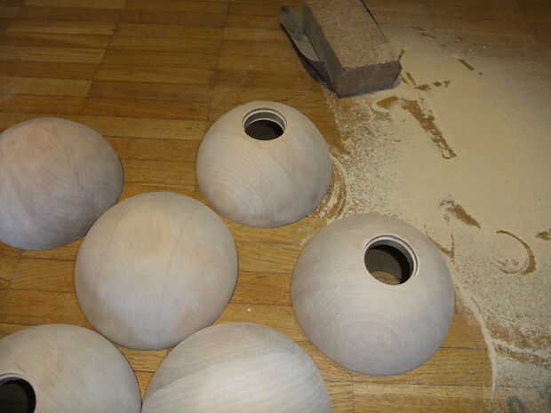 Después de taladrar todos los agujeros, hice los pares partido incluso mejor. Aviso que el original bowles han redondeado las costuras y no no queda bien. Lija la costura plana (en una máquina, pero se puede hacer manualmente) hasta las dos mitades iguale mucho mejor.