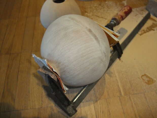 A continuación, utilizar las abrazaderas de la barra para juntar las dos mitades correspondientes y le dio un acabado de lija bien por lo que ahora coinciden casi perfectamente.