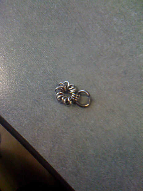 Ahora abre otro anillo acero y agrega 15 anillos de acero más. La forma más sencilla de hacer esto es mantener la punta del anillo de acero y alimentan la mitad de un lado luego el otro. Ahora la parte, firme pero lentamente cierre el anillo de acero dejando ningún hueco y los 18 anillos trabados. ahora a repetir esto hasta que tenga la longitud deseada. Asegúrese de cuando se va a agregar el siguiente conjunto de 15 para mantener 6 anillos 4mm a cada lado para añadir los aros exteriores a él. El siguiente paso le mostrará lo que quiero decir.