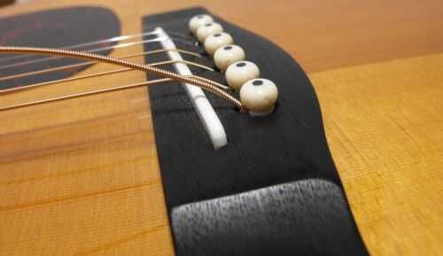ADVERTENCIA: No intente quitar el perno de puente antes de aflojar la tensión en la cuerda. Le puede hacer daño a usted o su guitarra, y nadie quiere eso.