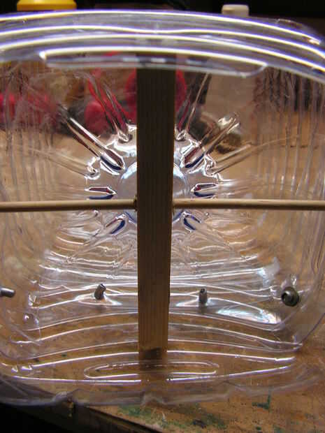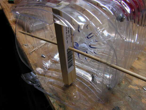 Un poco de paz de la madera, moldeado por entre su piernas hace lo un poco más fuerte. Por ahora es sólo una plástico 5 litros botella de agua en las piernas.