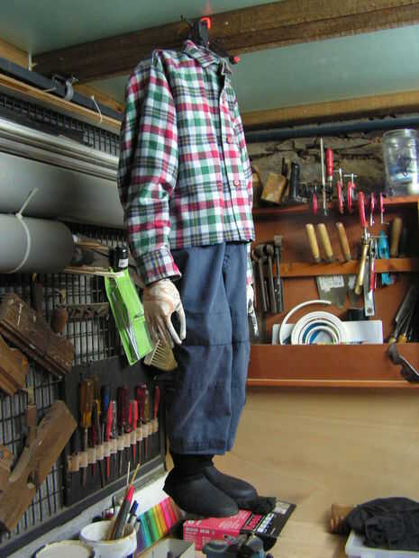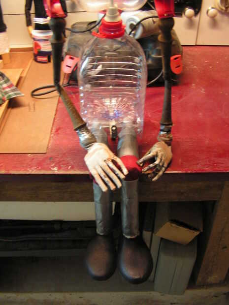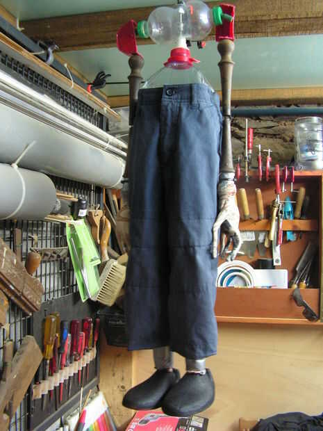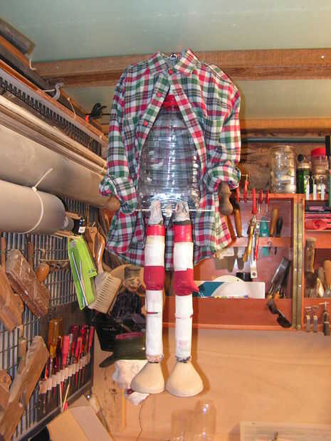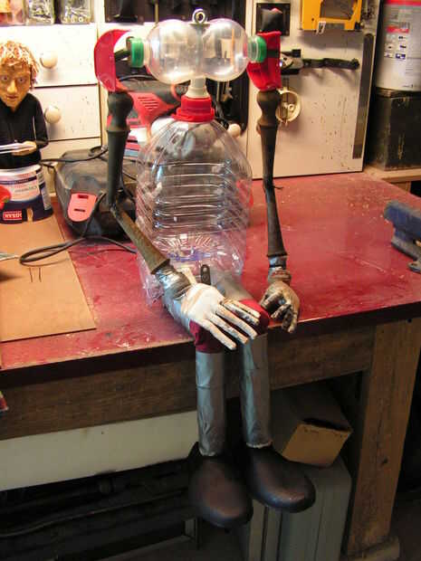 Ahora el cuerpo es completo... y después de muchas sugerencias, decidió dejar las manos como son y no se pintarlos. Algunos niños jeans guardados entren en el depósito, por un amigo... y una camiseta donada por una tienda de segunda mano en Tomar. Con algunos ajustes, corte y costura, Steve poco se viste