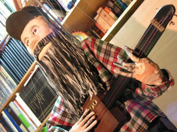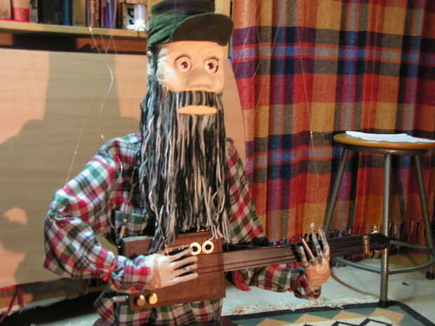 La mano resbala de Steve poco es controlada por un poco de palanca y rueda de una vieja caja de mecano y una banda elástica. Sus ojos son controlados por separado por gomas de pata de silla de goma pequeño. No es una marioneta de funcionamiento completa, gracias a él siendo tan pesado que se sentará en una silla.