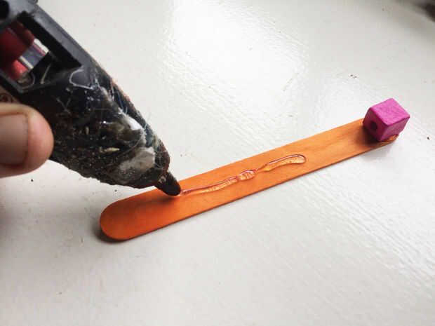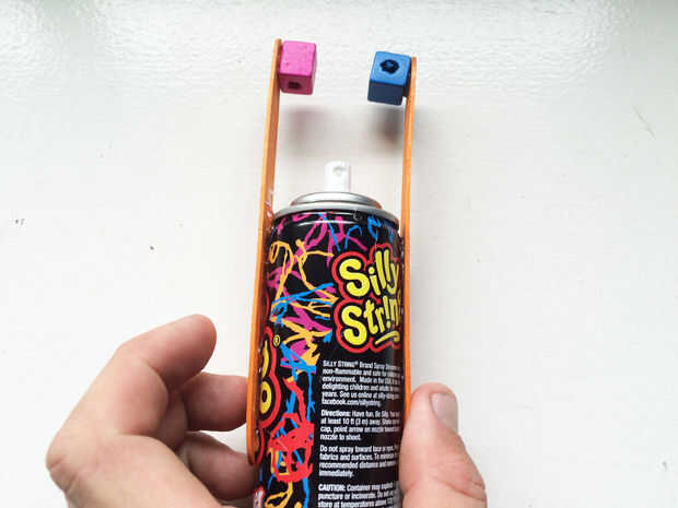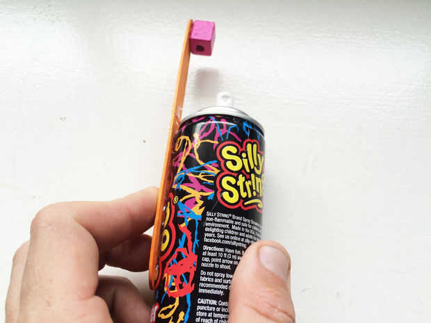 Pegamento para arriba sus palitos y rindan su puede cadena tonta. Desea que los palos para ser aproximadamente la misma altura por encima de la lata. Dar suficiente espacio para que el émbolo de la jeringa puede descansar no hacer contacto con el botón, pero golpeó cuando está extendido.