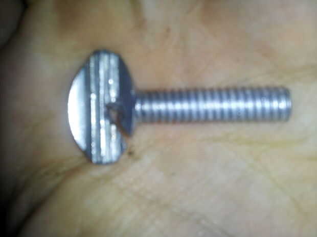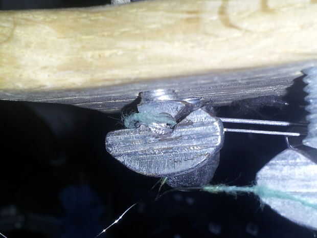 En este punto yo estaba experimentando con cómo utilizar efectivamente estas cosas como clavijas, envolver la cuerda alrededor de solo no alojarte. Como he dicho antes, mi dremel solo no podía hacer a través de ellos para hacer un agujero completo, que habría sido la situación óptima que creo. Agujero era deliberadamente descentrado cuando volvía tirando como quería demasiado. Terminé mi disco de corte reforzado y haciendo de esta forma de muesca, además se enfrentaron al otro lado de la clavija. (recuerden a niños, cuando usando ruedas de metal de corte de alta velocidad Asegúrese de sujetar con la mano y desafiante no use protección para los ojos... Oh Dios soy un idiota inseguro.)