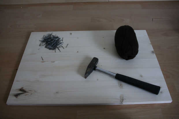 Usé 200 gr de clavos, 200m de cuerda y un trozo de madera (cerca de 40 * 60 cm)