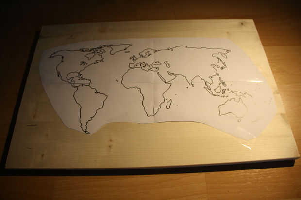 Encontrar un motivo e imprimirlo. Puede utilizar un mapa de la tienda, pero supongo que it´s más barato sólo imprimir hacia fuera y ajustar al tamaño de la pieza de madera.