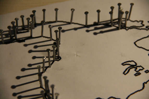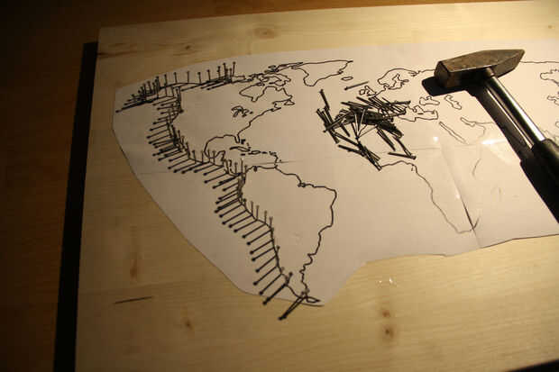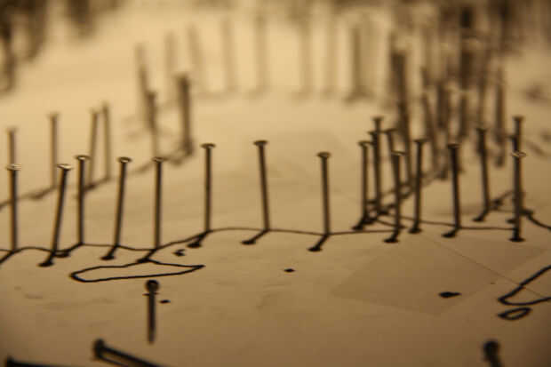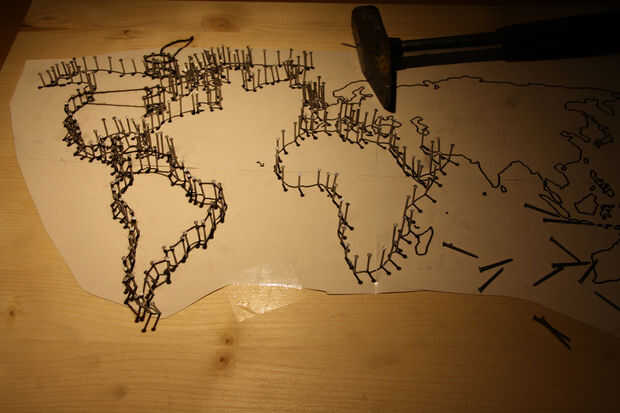 Ahora martillo los clavos en los contornos de su motivo. Dejar 1 cm entre cada clavo.