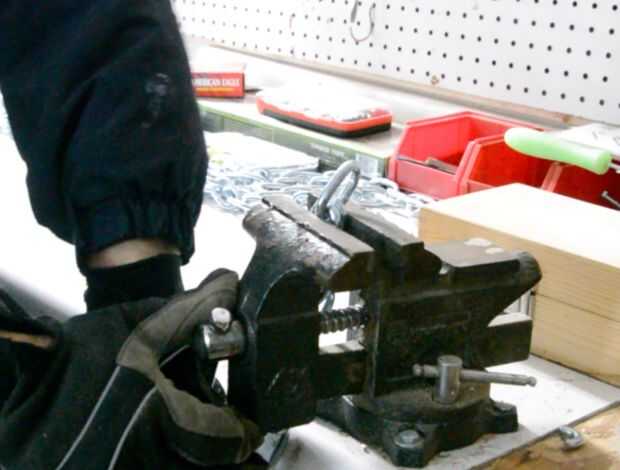 Después de hacer mis cálculos sé necesito 12, pie 3 trozos de cadena. Utilizando una cinta métrica Mida y anote la cadena con un marcador permanente en secciones de 3 pies. Puse en mis gafas de seguridad y ajustar la cadena en mi mordaza de mesa. Con mi amoladora angular cuidadosamente corte 2 lados de la longitud de una cadena.