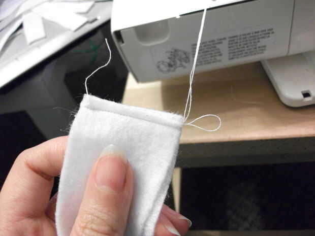 Decidir el orden de color y seleccione la primera pieza de fieltro. Juntar los 2 extremos brillantes y coser una línea recta a lo largo del borde.