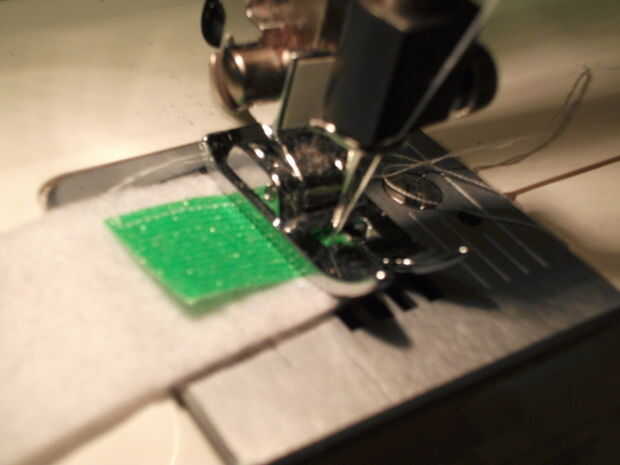 Coser el Velcro en la tira. Para hacerlo fácilmente, coser a lo largo de un borde y al llegar al final, dejar la aguja en el tejido, levante el pie prensatelas y gire a la tela 90 grados. Así, sólo tienes que coser detrás cuando se cose el perímetro completo del Velcro.
