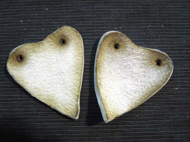 * Utilice el papel como patrón para cortar dos corazones de cuero.