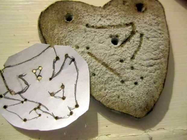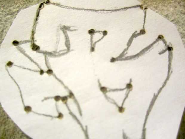 * Colocar encima de la piel y quemar agujeros en lugares estratégicos. Pongo los agujeros en las esquinas.
