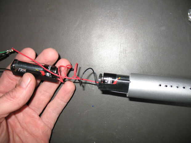 Como usted conjeturaba probablemente, el tubo de PVC es el eje para el personal. Antes de hacer cualquier cosa, asegúrese de que los titulares de la batería deslicen fácilmente, pero bien, en el tubo. Si parece un ir, cortar a la longitud que desee.