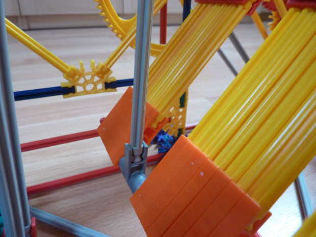 The arm carries the ball to the top of the lift. Este es el último paso!