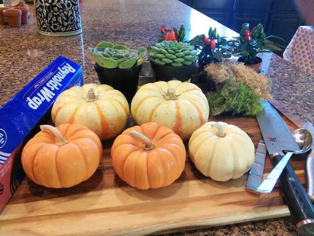 1) diverso color y tamaño mini calabaza (sugiero usar calabaza al menos tres).