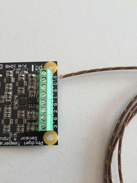 Cuando su sistema está listo conectar los termopares en el 1048, en este tutorial utilizamos un 3109_0 - termopar tipo K tira la punta de prueba TPK-01 G (-50 ° C a + 450 ° C).