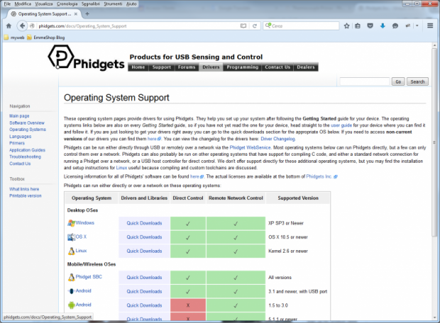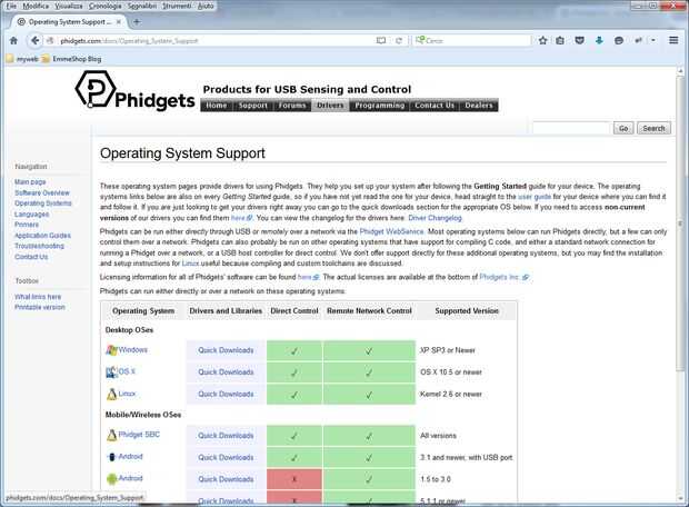 Primero necesita configurar su sistema para trabajar con los Phidgets, usted puede encontrar cada información en sitio web de Phidgets , conductores de sección