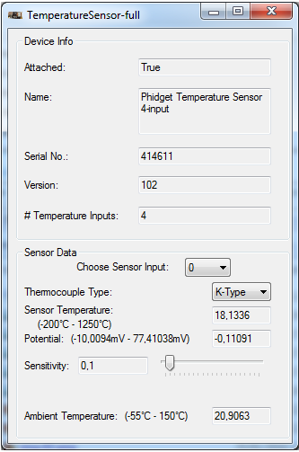Haga doble clic en "Phidget Sensor de temperatura de entrada de 4", nuestro 1048