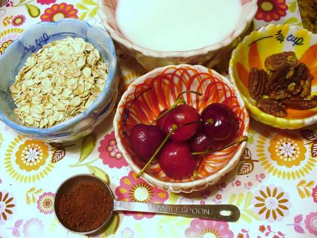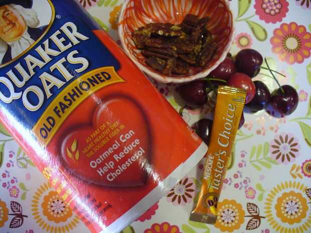 Paso 1: 1. Café avellana con Old Fashioned avena, nueces y cerezas frescas