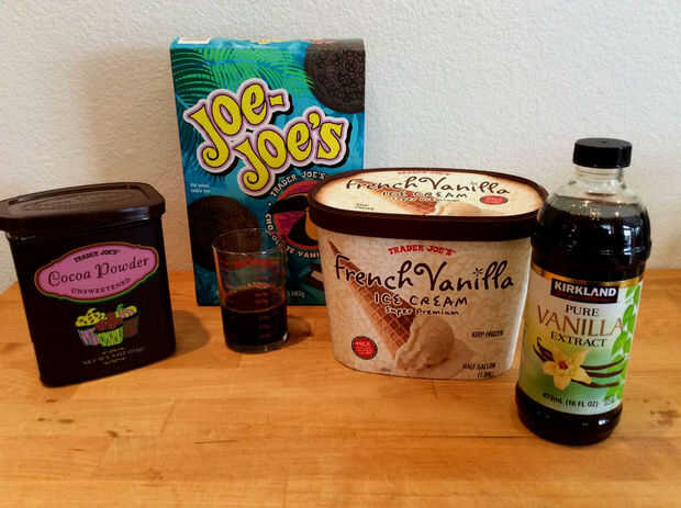 La receta es sencilla. Básicamente, tienes helado como base, luego un poco de líquido (café) y sabor opcional. Para esta receta particular, tengo saborizante como vainilla, galletas Oreo y chocolate en polvo sin azúcar. Así, 'café Oreo malteada'.