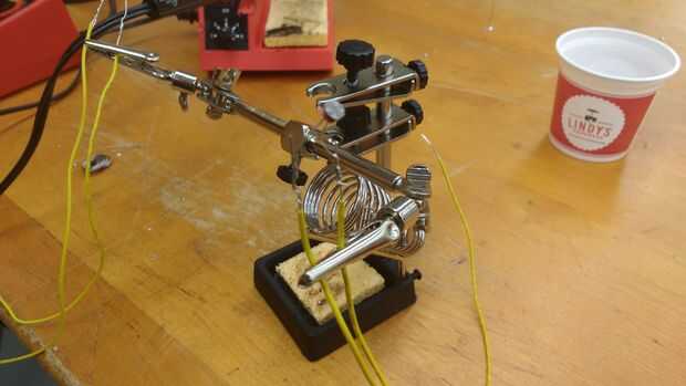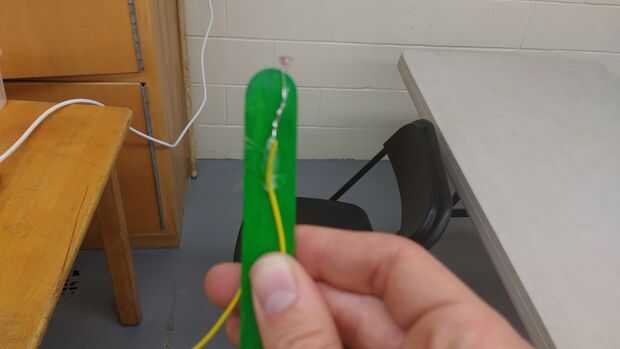 Pegamento caliente cada cable de resistencia y amarillo foto a un palo.